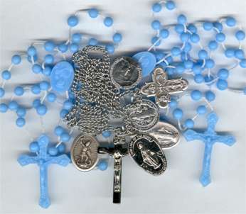 All the medals in this packet have been blessed by a priest. The Bayside Medal and the rosaries have also been blessed by Jesus and Our Lady of the Roses at Bayside, New York.