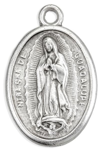 Oval Silver Oxidized Our Lady of Guadalupe Medal.